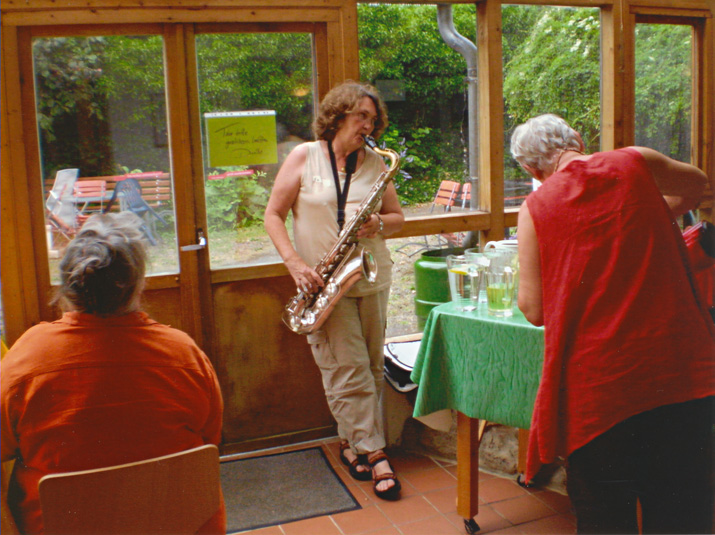 Aus den Pausen holt uns Felizitas Stadler mit ihrem Saxophon